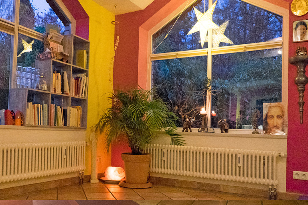 Das AUM DEVI Triyogazentrum am Wald schmiegt sich wunderschön in die moorige Landschaft an den Rand des Waldes vom Lübecker Ortsteil Moorgarten. Ein altes verschnörkeltes und verrostetes Schild begrüßt alle Teilnehmer/innen: Please leave your world here“ ( Bitte lassen sie Ihre Welt hier). Und wirklich: kaum öffnet sich das hohe Tor, taucht man ein in eine andere Welt als die der täglichen Pflichten. Es eröffnet sich ein Ort der Stille und Einkehr, fast verwunschen scheint es.